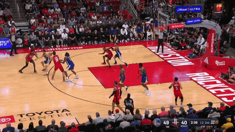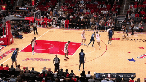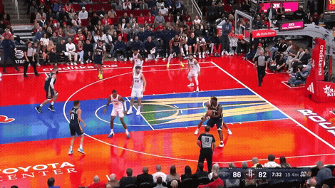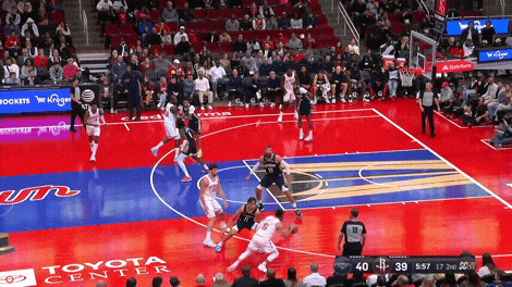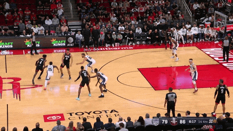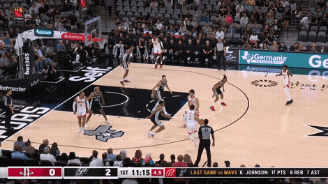 申京罚球线持球,队友赶紧往篮下走,算是一个固定套路了