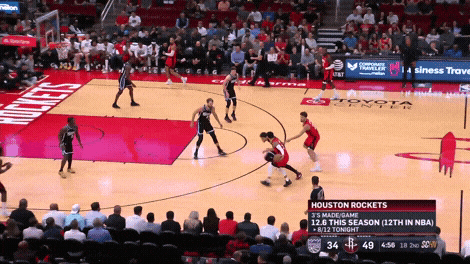 当申京发现对手频频会从弱侧底线来协防阻止他的后转身时,他会用逼真的肩部假动作骗过对手,再从反方向发动进攻。