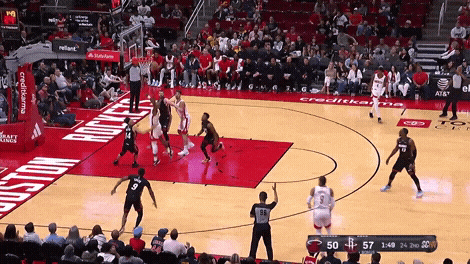 在挡拆进攻中,申京的多方位威胁也得以进一步释放:他非常习惯掩护后的短顺下,接球后会先观察对手的防守,寻找有没有处于空位的队友,本赛季他中间区域进球能力的提升也让对手不得不在他拿球时多几分忌惮;如果条件允许,他会顺势转为自己所擅长的低位进攻。