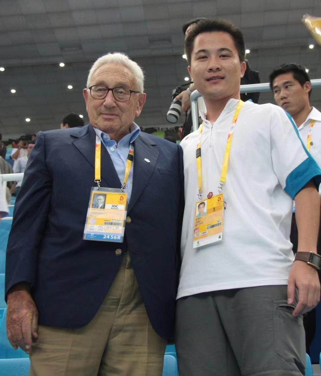看到郭晶晶与吴敏霞合作,以将近20分的绝对优势获得3米板双人金牌,基辛格起立为她俩的精彩发挥而鼓掌。尽管当时已是85岁高龄,基辛格仍然未见疲态。赛后,在接受记者采访时,基辛格和颜悦色地说:“郭(晶晶)今天跳得很好!我也喜欢看跳水,这几天一直在‘水立方’看比赛,这很有趣。”得知记者来自深圳,基辛格说:“哦,深圳,那是一座充满希望的城市!”