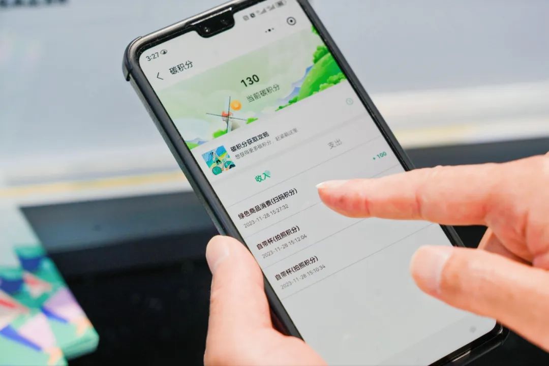 其中,三大绿色消费场景主要包括消费者自带水杯购买饮品,购物后使用场内商户的可循环购物袋,在指定商户消费绿色、可持续、环保类产品。市民完成以上任意一种低碳消费行为,均可在“碳惠梅沙”小程序获得碳积分,并兑换实物礼品。