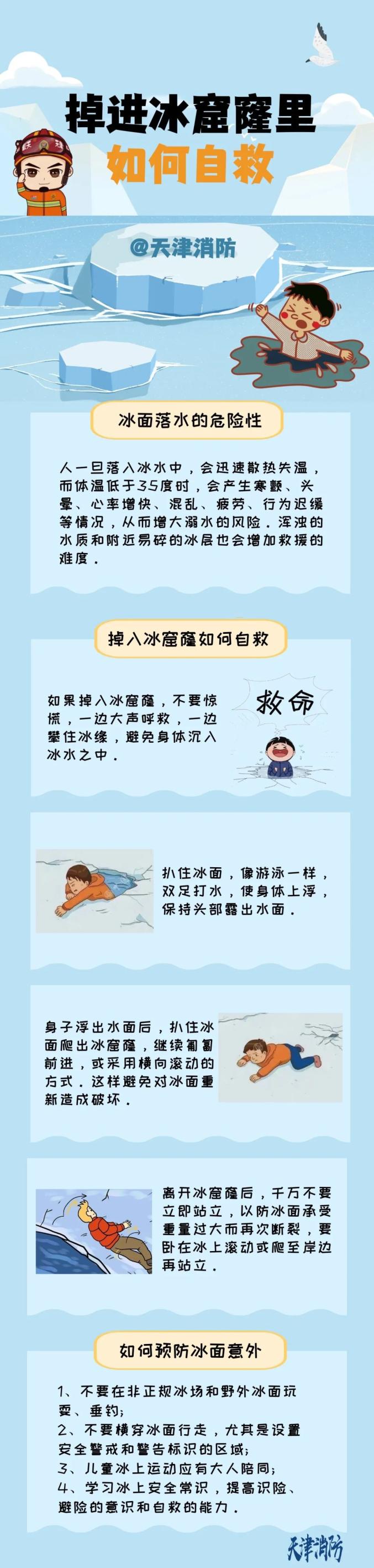 4. 离开冰窟后,不要立即站立,要用滚动或爬行的方式,慢速到达岸边再上岸。