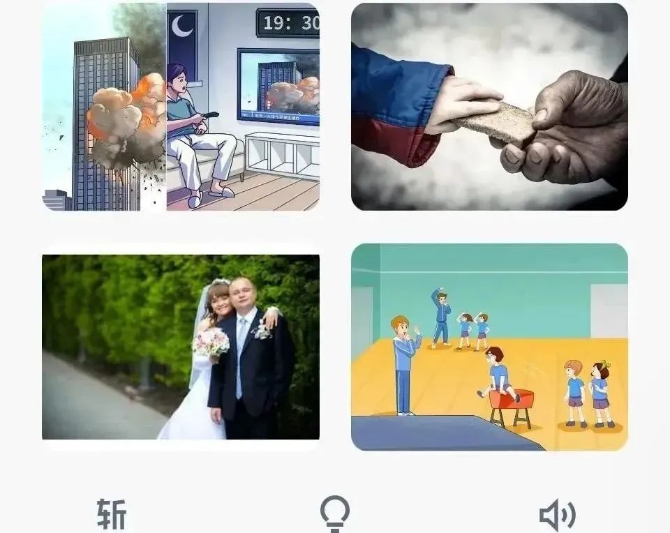 背单词时,首先页面会给出一个单词,下面四幅图画,如果选对了,那就跳到下一个词。如果选错了,会有提示音,然后多给出一句话,解释这个单词在图片中的应用,实例如下: