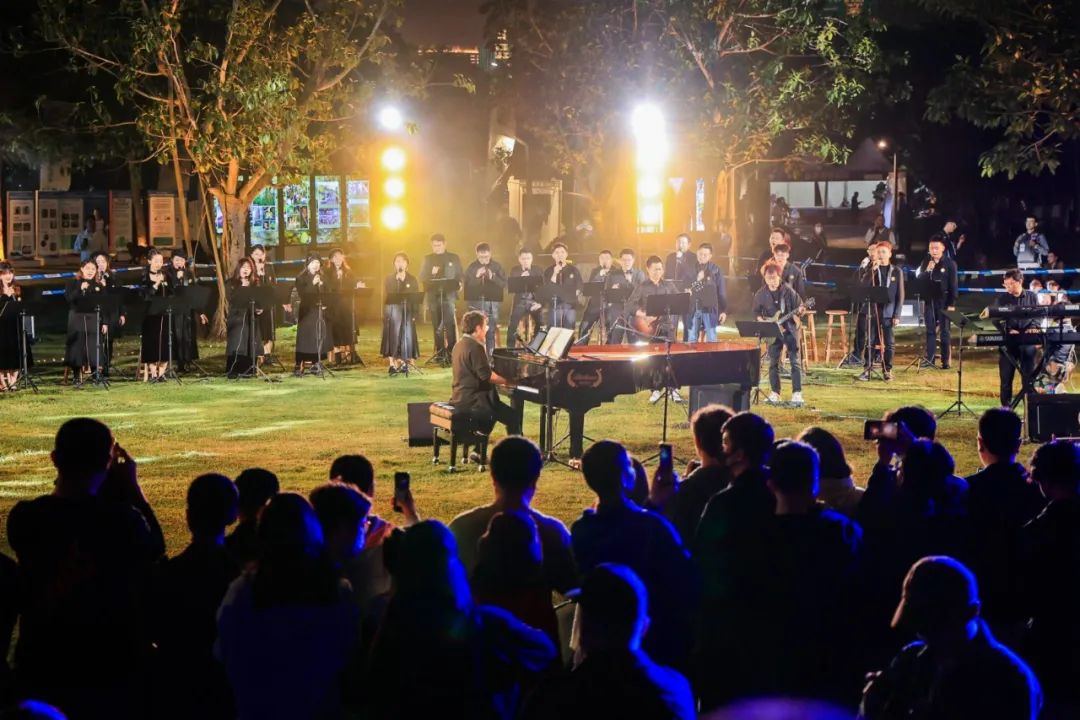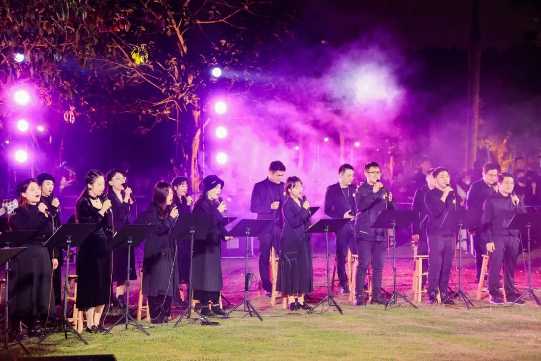 星空合唱音乐会则以「星辰」+「草坪」+「乐队」+「和声」的形式开展,以时尚、潮流、创意、唯美为基调,融入海景、草坪,创意十足,格调拉满。