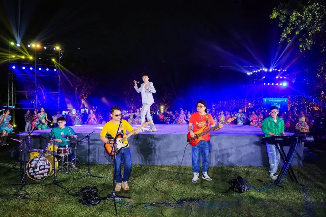 花灯初上,乐声悠扬,作为星空音乐会开场的第一天,活动现场热闹非凡,大家欢聚一堂,共享这个难忘的盛会。《护花使者》《凡人歌》《大风吹》《喜欢你》《突然想起你》……一首首经典歌曲在夜空中回荡,引得在场的观众们大声合唱。其中,《海南经典歌曲联唱》《你要跳舞吗》《奢香夫人》等经典歌曲更是引发了全场的共鸣。在乐队的演奏下,舞蹈演员的带动下,台下观众一起合唱,一起欢呼,大家载歌载舞,充满了欢乐和激情。