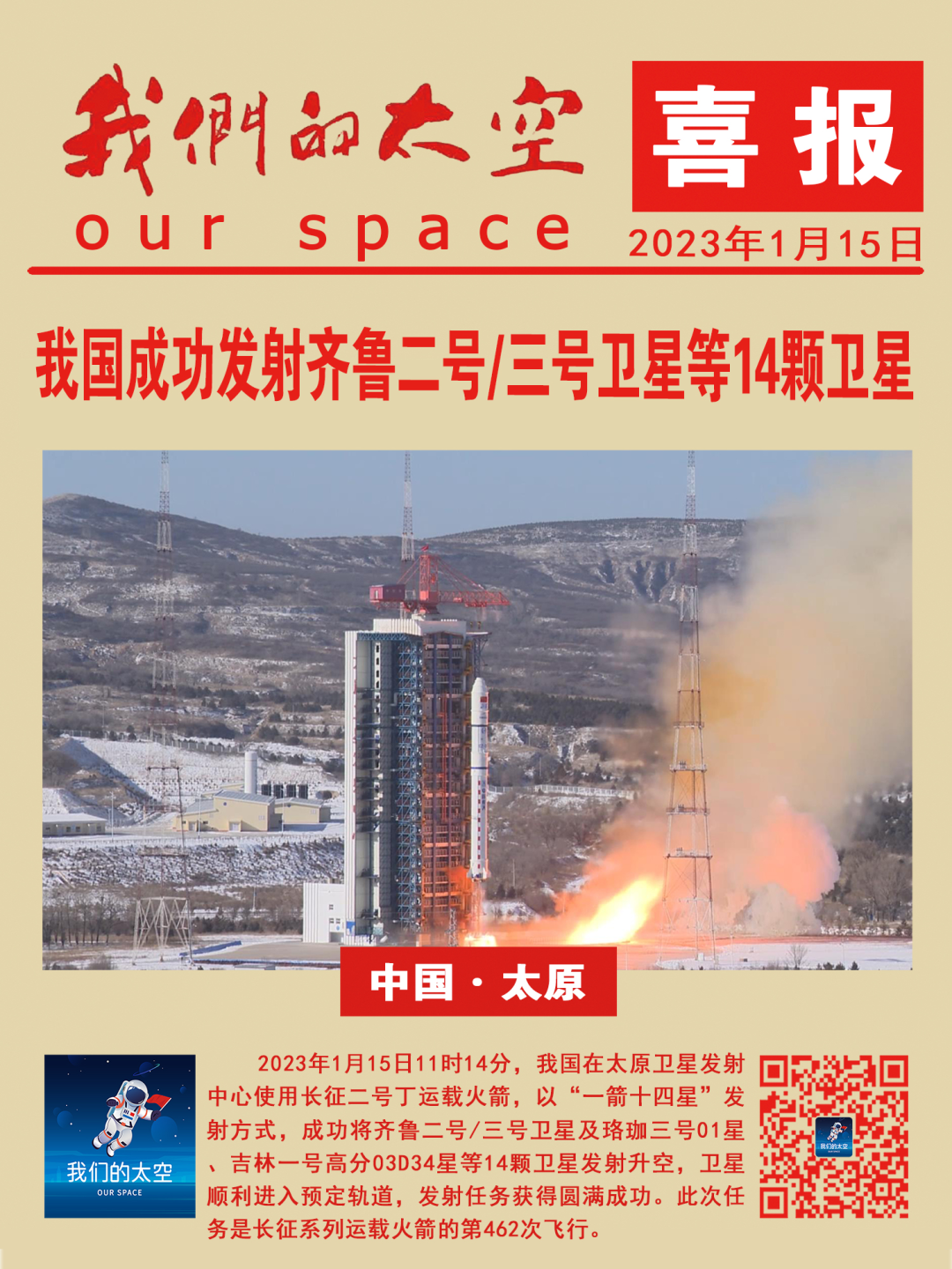 ▲2023年1月15日11时14分,我国在太原卫星发射中心使用长征二号丁运载火箭,以“一箭十四星”发射方式,成功将卫星送入预定轨道,这是当时我们的太空制作的任务成功喜报。