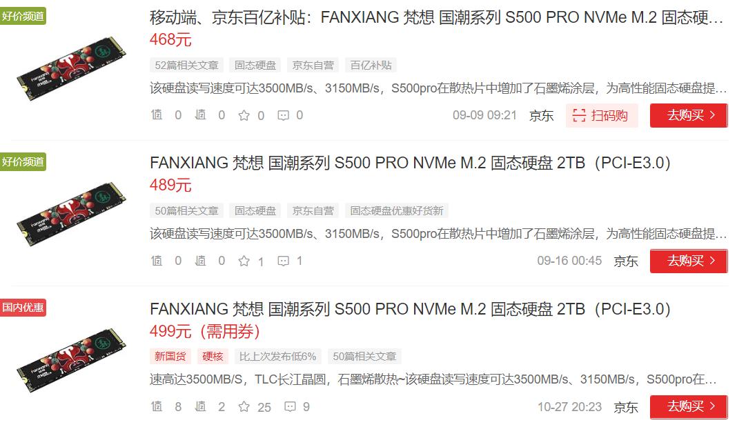 没有的话,这波车应该是错过了,因为我发现固态硬盘它又涨回去了,不管是国产还是海外品牌固态,它们现在普遍上涨了几十甚至是几百。