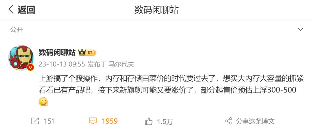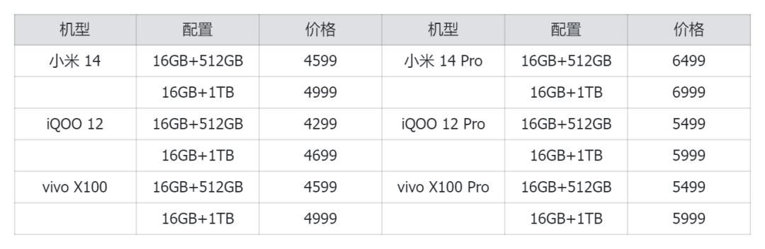当然,这事儿也没有那么绝对,因为手机厂商还可以通过提前囤货、砍掉一些不重要的周边配置等各种手段来转移内存和闪存上涨导致的成本增加。至少就目前来看,最近发布的这些新机,像是小米 14 还有 iQOO 12,同样的内存和容规格下,它们的首发价相比上一代反而还更便宜了。
