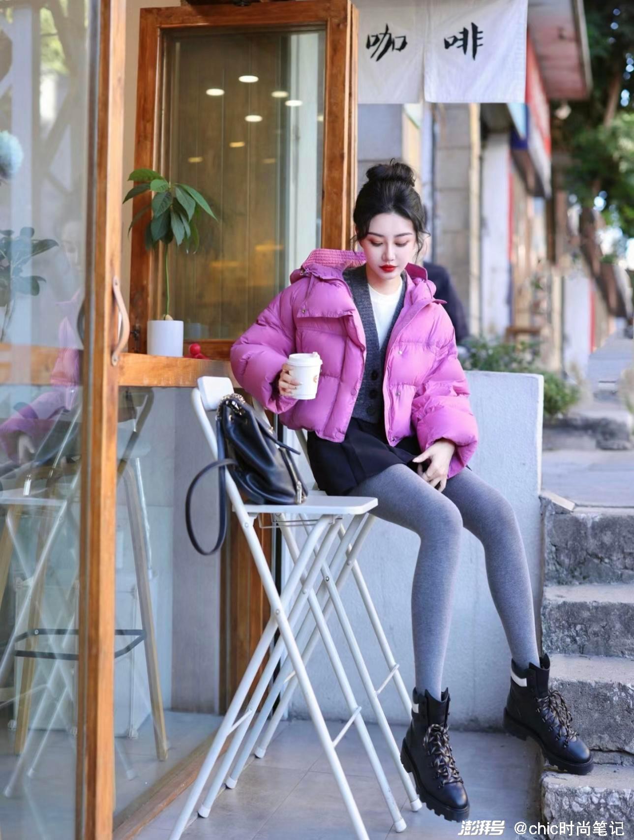 彩色羽绒服搭配来,告别黑白灰,独属于冬季的一抹亮色
