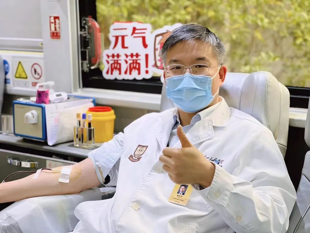 ▲ 新增的采血点位,得到了上海市第一人民医院医护人员的大力支持。图为市一医院心内科医生杨文艺利用午休时间来献血。