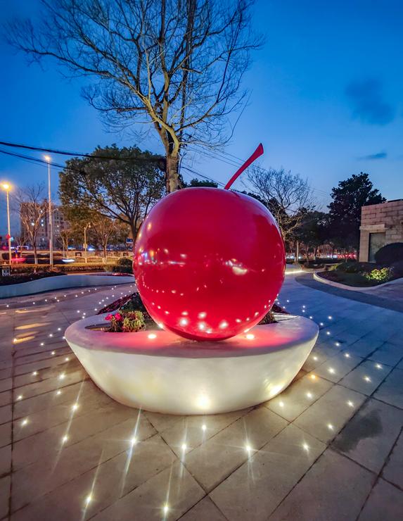 金高路东靖路西北角原为街角广场,存在绿化品种单一、服务设施缺失等问题。高行镇引入社区设计师,在充分听取居民意见的基础上,对街角广场进行改造提升,打造集娱乐、休闲、观光于一体的街心花园。街心花园以红苹果与月亮湾雕塑为主题,增设休闲座椅、丰富草花品种、重塑绿荫步道,已成为老幼皆宜的网红打卡地。