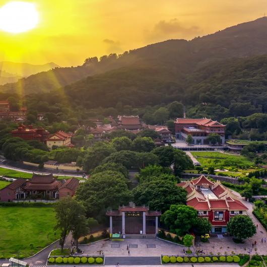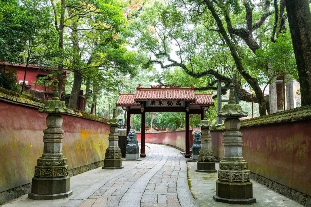 福州市鼓山涌泉寺为“闽刹之冠”,又是全国重点寺庙之一。寺建在海拔455米的鼓山山腰,前为香炉峰,后倚白云峰,有“进山不见寺,进寺不见山”的奇特建筑格局。相传它的旧址为“华严寺”。唐建中四年(783年),有龙居灵源洞(《鼓山志》载:“其先为潭,毒龙居之。”),从事裴胄认为“神物所蟠,宜寺以镇之”,请高僧灵峤入山诛茅设台念《华严经》,遂成华严寺,从此龙不为害。宋朝时,宋真宗赐额“涌泉禅院”。1407年改称涌泉寺。明代该寺曾两次毁于火灾,相继修复、扩建,形成今天的规模。图源:遇见福州、清新福建 文旅之声