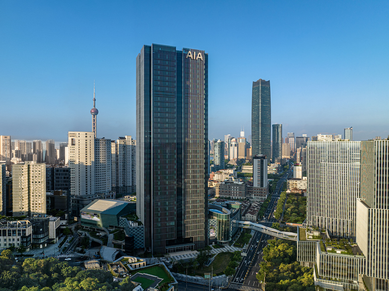一条艺术丝带飘逸流动,连接起友邦金融中心和FC金茂广场。