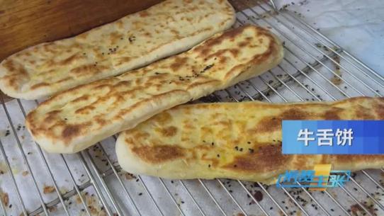 铁谢李松家的牛舌饼有自己的独家秘笈,在活好的面上铺上一层油酥,均匀地撒上炒制过的盐和小茴香,再将其分成大小均等的面剂子,擀开之后,先烙再烤,两分钟就能出锅,表皮松脆、内质软糯,一口下去回味无穷。