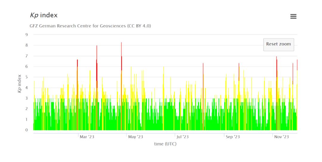 [6]Matzka, J. & Stolle, C. & Yamazaki, Yosuke & Bronkalla, O. & Morschhauser, A. (2021). The Geomagnetic Kp Index and Derived Indices of Geomagnetic Activity. Space Weather. 19. https://doi.org/10.1029/2020SW002641.