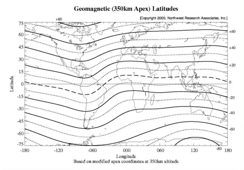 当前通用的地磁纬度模型这个现象的确值得关注。由于该现象是最近数年才出现,而目前尚未有系统性研究;这里仅结合部分文献研究(Chulliat et al.2010; Livermore et al. 2020;)给出一个不严谨的猜想:这可能和西伯利亚一带局地磁场的增强有关。