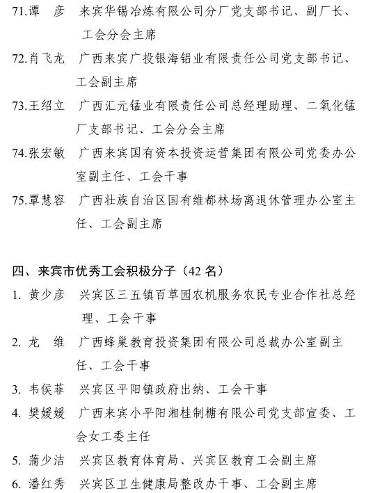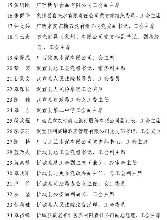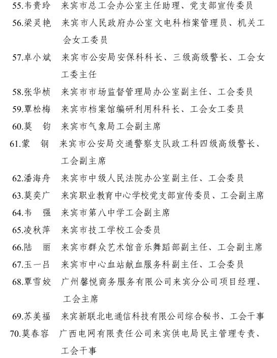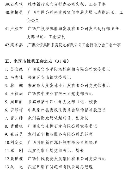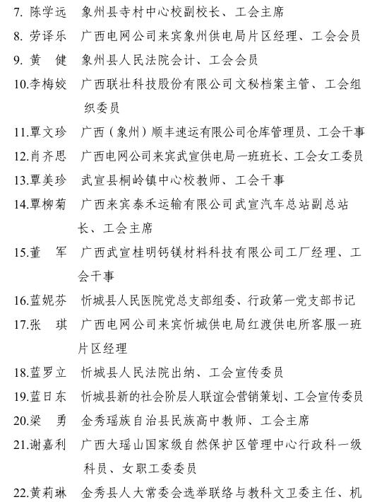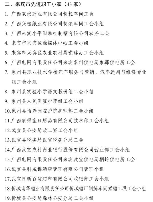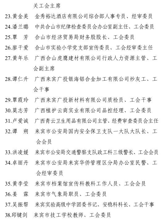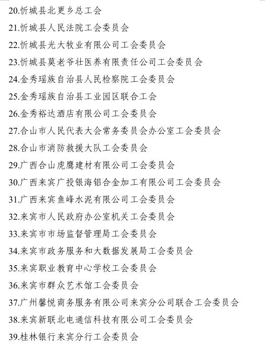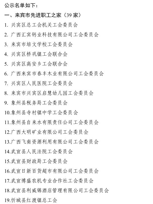 2023年来宾市先进职工之家、先进职工小家、优秀工会工作者、优秀工会积极分子、优秀工会之友名单公示