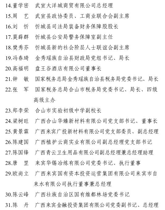 根据《来宾市总工会关于开展2023年全市先进职工之家、职工小家和优秀工会工作者、工会积极分子、工会之友集中确认的通知》要求,经全市各级工会自下而上逐级推荐,市总工会主席办公会议审定,现对我市拟确认的来宾市先进职工之家、先进职工小家、优秀工会工作者、优秀工会积极分子、优秀工会之友名单予以公示。公示期为2023年12月6日至12月12日(5个工作日)。对公示名单如有异议,请以书面形式,并署真实姓名、联系地址和联系电话,于公示结束之日前邮寄或直接送达来宾市总工会(来宾市兴宾区文辉路133号6楼617室),邮寄以邮戳为准,直接送达的以送达日期为准,邮编:546100,联系电话:0772-4236292。群众如实反映有关问题,将被严格保密,并受法律保护。