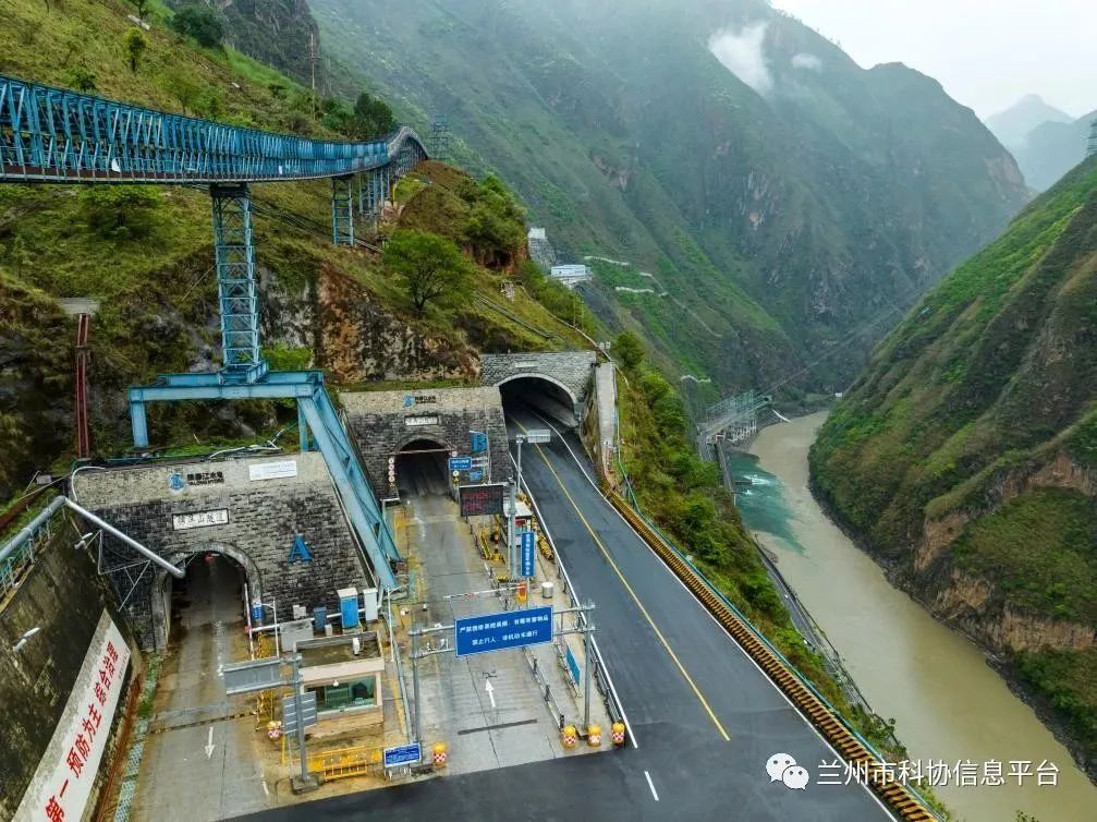 这是7月4日拍摄的中国锦屏地下实验室所在的锦屏山交通隧道口以及旁边的雅砻江(无人机照片)