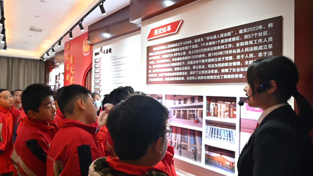 想到这些,瞬间感觉我们的活动充满了意义 。作为解说员,我把法院的一事一物、一案一例编成故事为学生们讲解,把法袍上四颗纽扣的深刻含义娓娓道来便是让学生们在社会环境中耳濡目染,接受熏陶。鹤城法院广场上鲜红的五星红旗迎风飘扬,孩子们跑跑跳跳,张语萌同学说“要学法守法与法同行,要从小争做一名知法守法用法的好少年,我坚信,青春与法治同行。”给我留下了深刻印象。原来这就是生在正红旗下,长在春风里的感觉!