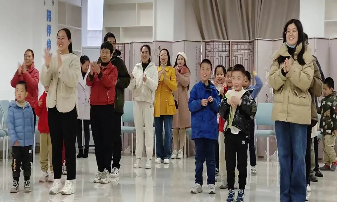 热身游戏活动开始,彭老师以一首“金龙拍拍操”热身游戏为开场,“头头拍拍,肩肩拍拍,头拍,肩拍,头肩拍拍......”伴随着动感的音乐,节奏欢快的暖场热身活动瞬间让现场气氛热烈起来。