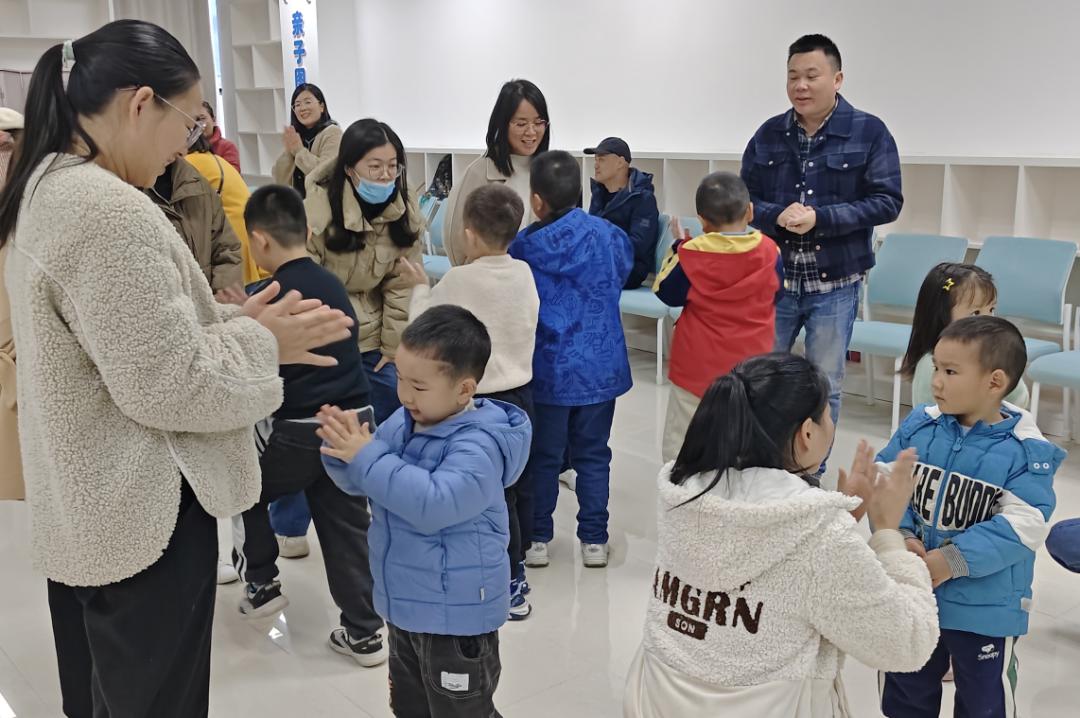亲子快慢拍击自我介绍完后,家长和孩子们开始了新的游戏环节,这次需要根据变换的节奏进行快与慢的拍掌游戏,在游戏中我们能看到家长和孩子们脸上露出的兴奋与开心。在此游戏中不仅增进了亲子关系,还可以帮助到孩子发展手部协调能力。