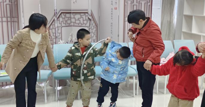 亲子快慢钻圈在老师的组织下家长和孩子们又被分成了三个小组进行“钻圈”的游戏活动。活动以不同的形式开展了两遍,一遍以“催促与责骂”的形式进行,一遍以“轻松与夸奖”的形式进行。