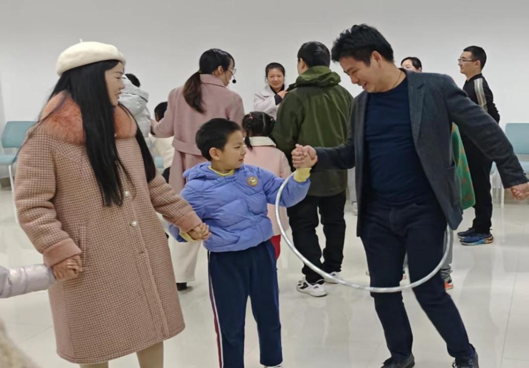 认识朋友接下来,彭老师将所有的参与者分成了三组,孩子围内圈,父母围外圈,家长双手拉着孩子们的手,眼睛四目相对,开始了一次不一样的自我介绍。