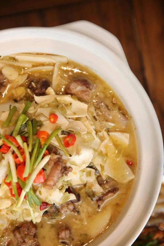 这可真是“好吃+好吃=超好吃”的组合了,将食材爆炒后放上风炉慢慢煨炖,爽口的雪菜配上鲜脆的冬笋,再和排骨的肉香混合在一起,怎一个“鲜”字了得!