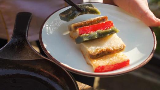 黄米粿除了长粽,金黄Q弹的黄米粿,也是来到遂昌一定要尝一尝的“糯叽叽”美食,它的口感和年糕相似,但更多一份草木的芳香,软糯又有韧劲,做法多样,是地地道道的浙西南美食,受到许多人的喜爱。