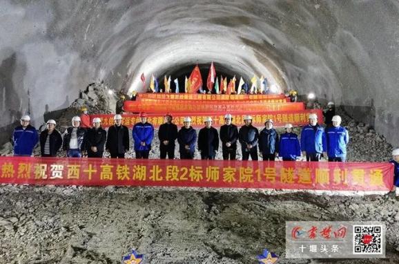 师家院1号隧道位于郧西县城关镇乾兴寺村和小河村之间,2022年4月开工,全长2212米,工期18月,隧道主要岩石为四五级。中铁隧道局西十高铁二标一分部副经理蒋全福介绍,在隧道开挖过程中,坚持“短进尺、弱爆破、强支护、快封闭、勤量测”,并采用三台阶工法、机械湿喷工艺、多功能衬砌台车工装设备,严格控制施工步距,有效确保了施工安全。据了解,中铁隧道局西十高铁二标一分部承建桥隧全长9.2公里。中铁隧道局西十高铁二标一分部经理方世君介绍,一分部管段内一共有7座隧道。截至目前,六官坪、梅家台、陆家院、师家院一号、师家院二号5座隧道已经贯通,乾兴隧道和黄石梁隧道有望在春节前贯通。一分部管段内共有9座桥梁,截至目前已经建成6座,剩余灯草沟、党家沟和车家沟中桥,计划在明年4月之前全部完成。