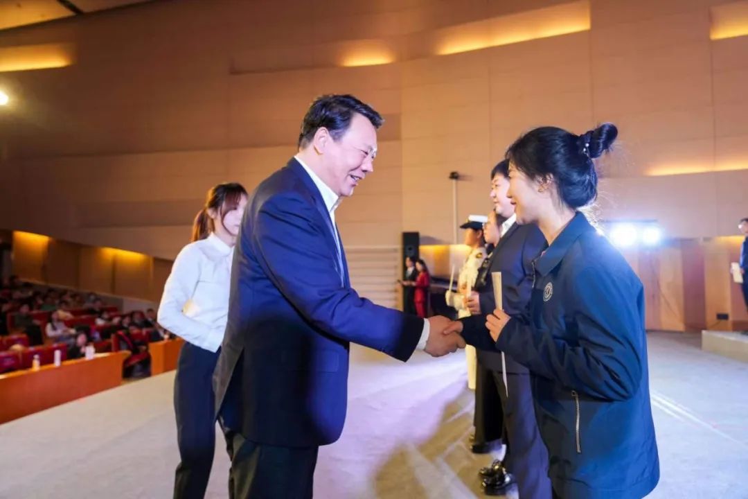 党委学生工作部、校团委、研究生院、教务部、国际合作与交流处、体育部、国际教育学院相关负责人,各学院党委副书记、副院长,获奖学生代表,观礼师生等500余人参加活动。