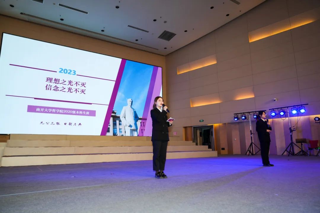 哲学院2020级本科生余韵、杜怀珠汇报了第十三届周恩来班建设情况。“南园若再添春色,定是今朝月日新”,班级始终追随着周恩来总理的脚步,以哲学为笔,用实际行动书写周恩来精神的时代内涵。