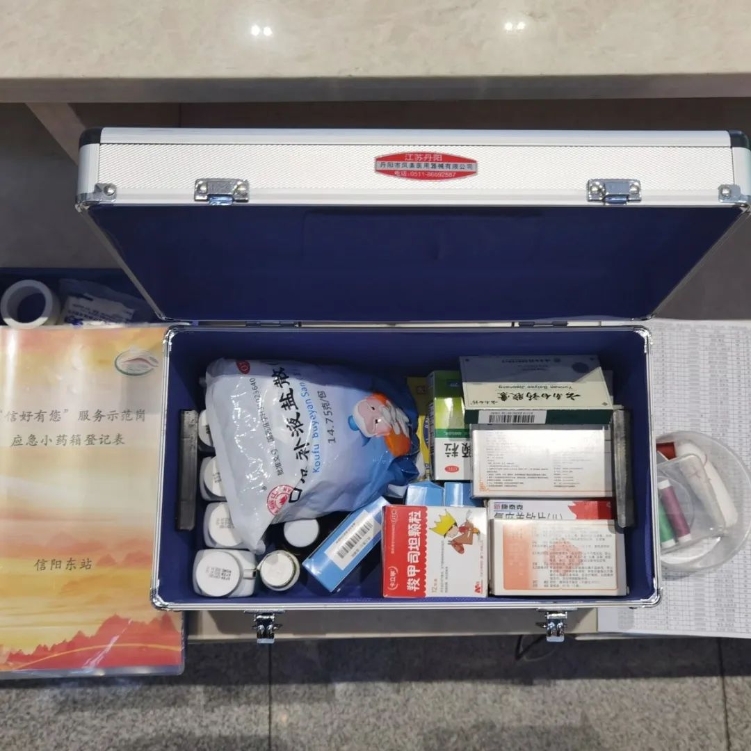 服务备品:常用应急药品、针线包、轮椅、信阳地图、列车时刻表等。