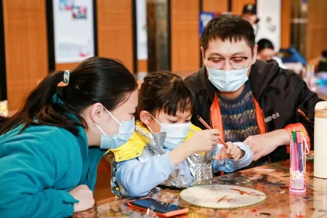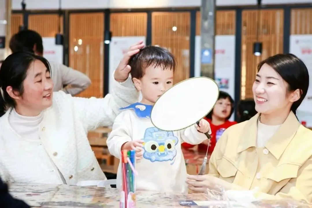 在中国文化中,圆形的团扇包含着天人合一、团圆美满的美好愿望,因而受到大家的一致喜爱。在现场老师的指导下,孩子和家长们利用空白扇面、各种绘制工具,着手绘制了各自独具一格的精美团扇。