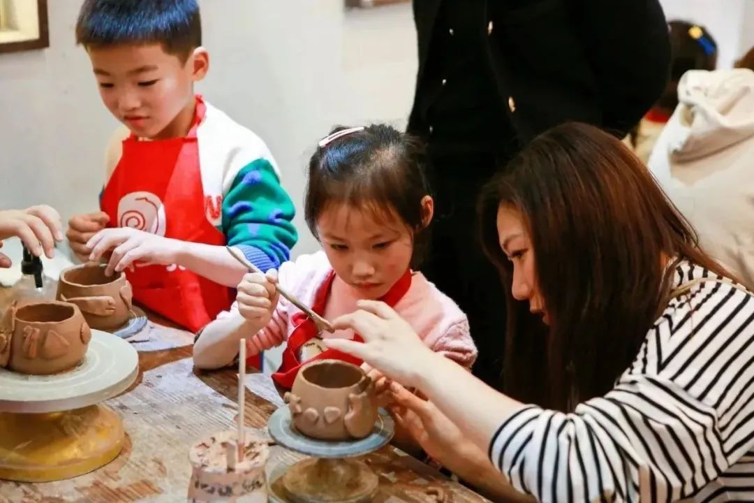指导老师以陶艺的观念、材料、技法为主要内容,从陶艺的发展过程及经典作品分析入手,让孩子和家长们通过对陶艺的学习,将天马行空的想象注入其中,全手工制作一件作品,从而进一步开发孩子们对美的追求。孩子们在父母的陪伴下,既学习了陶艺的技法,也感受了来自父母的关爱与陪伴,共同度过了一段轻松治愈的亲子时光。