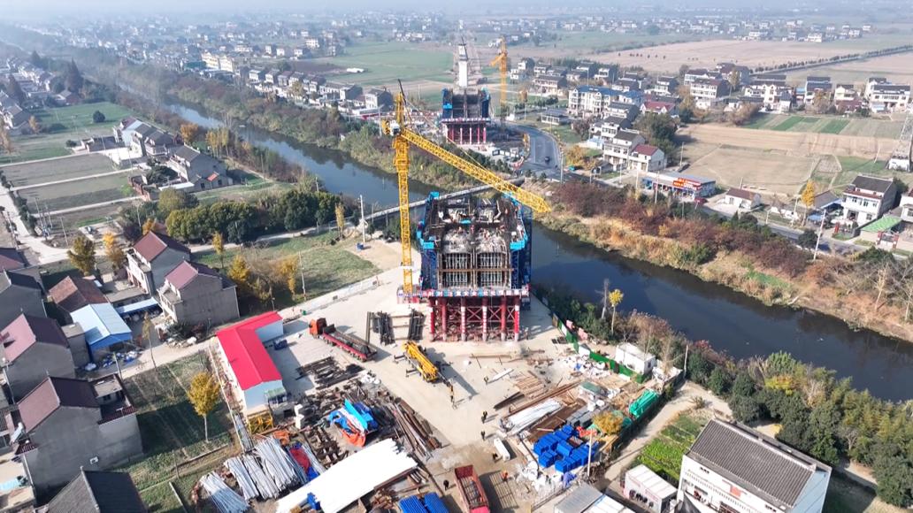 日前,在如泰运河与分界增产港交界处,由中铁十一局承建的通泰扬特大桥跨X355县道及如泰运河连续梁,正在加紧施工。该段全长345.8米,采用主跨为168米的连续梁拱跨越既有航运通道和公路,是沪渝蓉高铁泰州段最大跨度的连续梁拱。