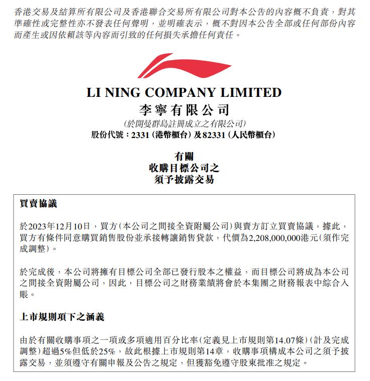 李宁投资者关系部门工作人员对蓝鲸财经记者表示:“本次收购预计将动用约22亿港元,即便我们选择全现金支付方式,公司的现金流和运营资金都将保持在一个健康的水平。”