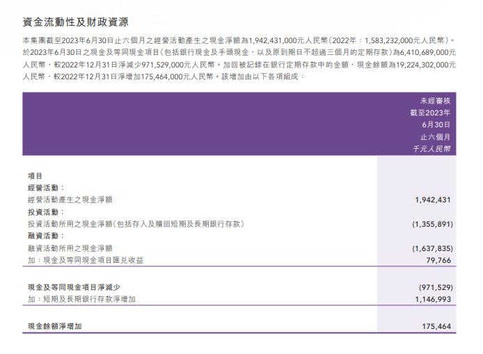 截至2023年6月30日,李宁公司的现金及等价物总额为192亿元人民币,包括包含受限制之银行存款及长短期银行存款。