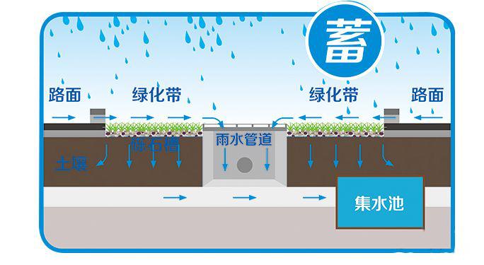 “蓄”,就是把雨水留下来,要尊重自然的地形地貌,使降雨得到自然散落,原来到湖里的还去湖里,原来到沟渠里的还去沟渠。