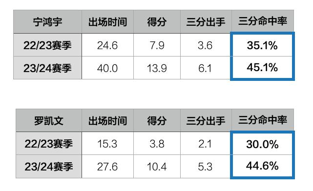 罗凯文偶尔找回一点扣篮王的感觉,看看王俊杰的上球速度本赛季宁波国内球员中,宁鸿宇和罗凯文是最受王俊杰滋润的球员,上赛季没有王俊杰发牌的宁鸿宇三分球命中率只有35.1%,本赛季却直接暴涨至45.1%的水平。和王俊杰一起来到宁波队的罗凯文也一样,上赛季在北控三分命中率只有30%的他,本赛季也猛升至44.6%(当然这两位球员本身也练的很努力)。