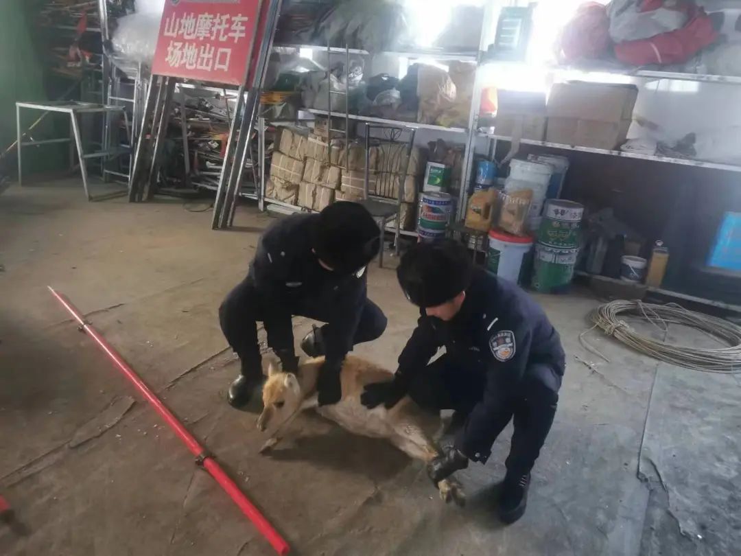 “民警同志,我看到狗正追着一只羊跑到滑雪场仓库里了,和平时看见的羊又好像不太一样,你们快来看下吧,”12月8日下午,阿尔山分局圣泉派出所接到阿尔山市太伟滑雪场职工求助电话。