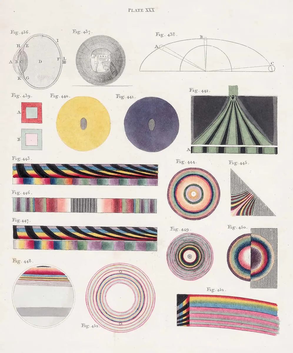 科学可视化:这张1807年出版的图片是托马斯·杨于1802年在英国皇家科学院讲座中的插图。该图展示了几种光学现象,其中就包括了眼球解剖学和双缝干涉现象。图源:wiki英国皇家研究院得到了一位博物多闻但玩世不恭的冒险家本杰明·汤普森[Benjamin Thompson,即拉姆福德伯爵(Count Rumfod)]的资助,他的资助足够皇家研究院在伦敦市中心的阿尔伯马尔街盖一栋精美的建筑。拉姆福德最著名的科学贡献是他的热理论,这要归功于他在枪炮和炸药方面的实验。通过对金属火炮镗孔过程的研究,他意识到热并非是一种物质,没有“热质”(caloric)一说,热是由原子和分子的振动所产生的能量。