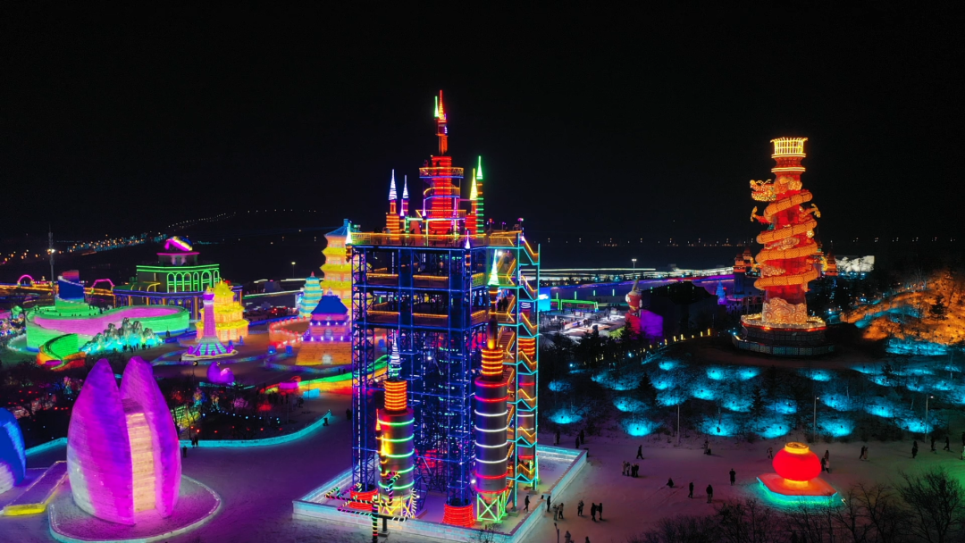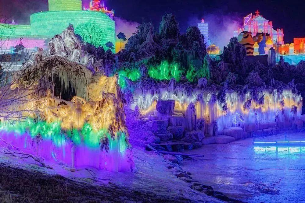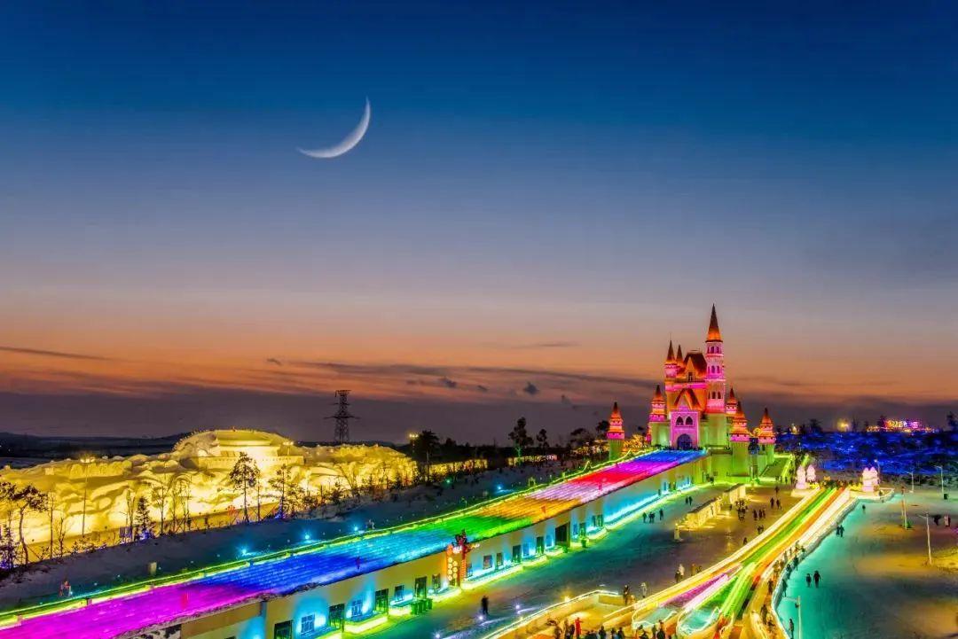 夜晚尽享冰雪世界的视觉盛宴