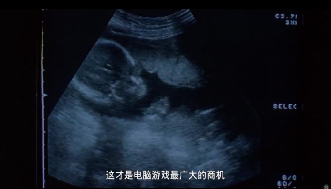 Y2K全称 Year 2000 Kilo,又名千年虫危机。本指世纪之交时期,计算机处理日期时出现的一个技术漏洞引发了一场人心惶惶的“科技恐慌”。但千禧年同时更是互联网科技腾飞的年代,人们一方面感受着新旧千年的交替,一方面交杂着对新世纪的无限忐忑与期望,在此之上凝结了千禧年代的集体想象。为了表达这种复杂的社会情绪,Y2K 美学应运而生。高科技、信息化与高度发展的乌托邦成为Y2K美学风格的底色,金属材质、像素风游戏则将Y2K元素延伸至至视觉感官中来。阿弟和妻子在医院产检,镜头呈现医学影像中模糊的胎儿形状,极似人工智能的一个机械女声出现,成为画外音:“它已经开始具有生命的一般现象,它除了可以思考、计算,她还会成长成一个活生生的新生命,成为我们每个人寄托感情的好朋友……这才是电脑游戏最广大的商机。”新生儿与信息智能的过度相似,让观者难以辨认出,这段画外音其实是大田对电脑游戏产品介绍的同传翻译,但这也正说明了信息浪潮初初翻涌时期,社会对科技发展的未来想象,大胆而精准。