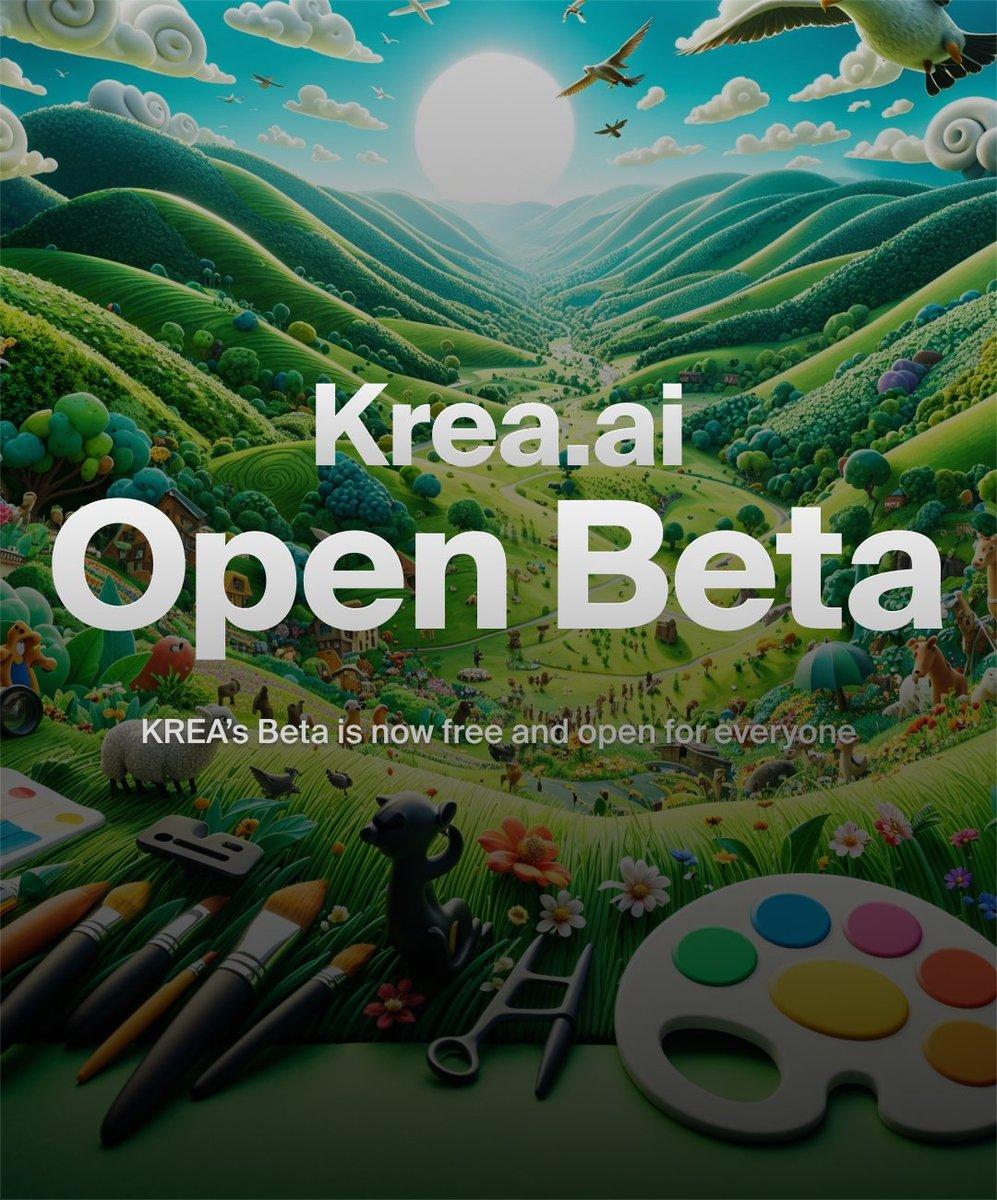 与此同时,之前热度不减、但一直处在内测阶段的 AI 设计工具 Krea AI Beta 版也终于开放,现在可以免费体验(部分功能)。