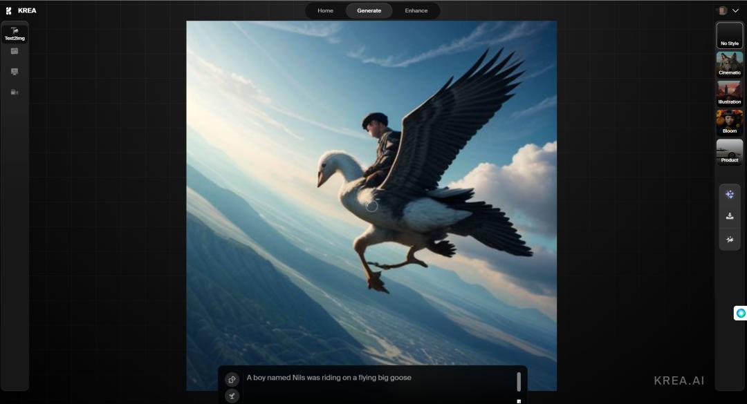 与一般文生图工具稍有不同的是,Krea AI 主打一个实时性。它是一个创意工具包,除了当红的实时生成工具(Real-time Generation )、增强工具( upscale&enhance ),还有几个特定功能的小工具。背靠 2,500 多个 AI 模型,Krea AI 可以应对不同艺术风格品味的需求。尤其是实时生成工具,凭借惊人的生成速度和对画面效果的精准控制,备受瞩目。
