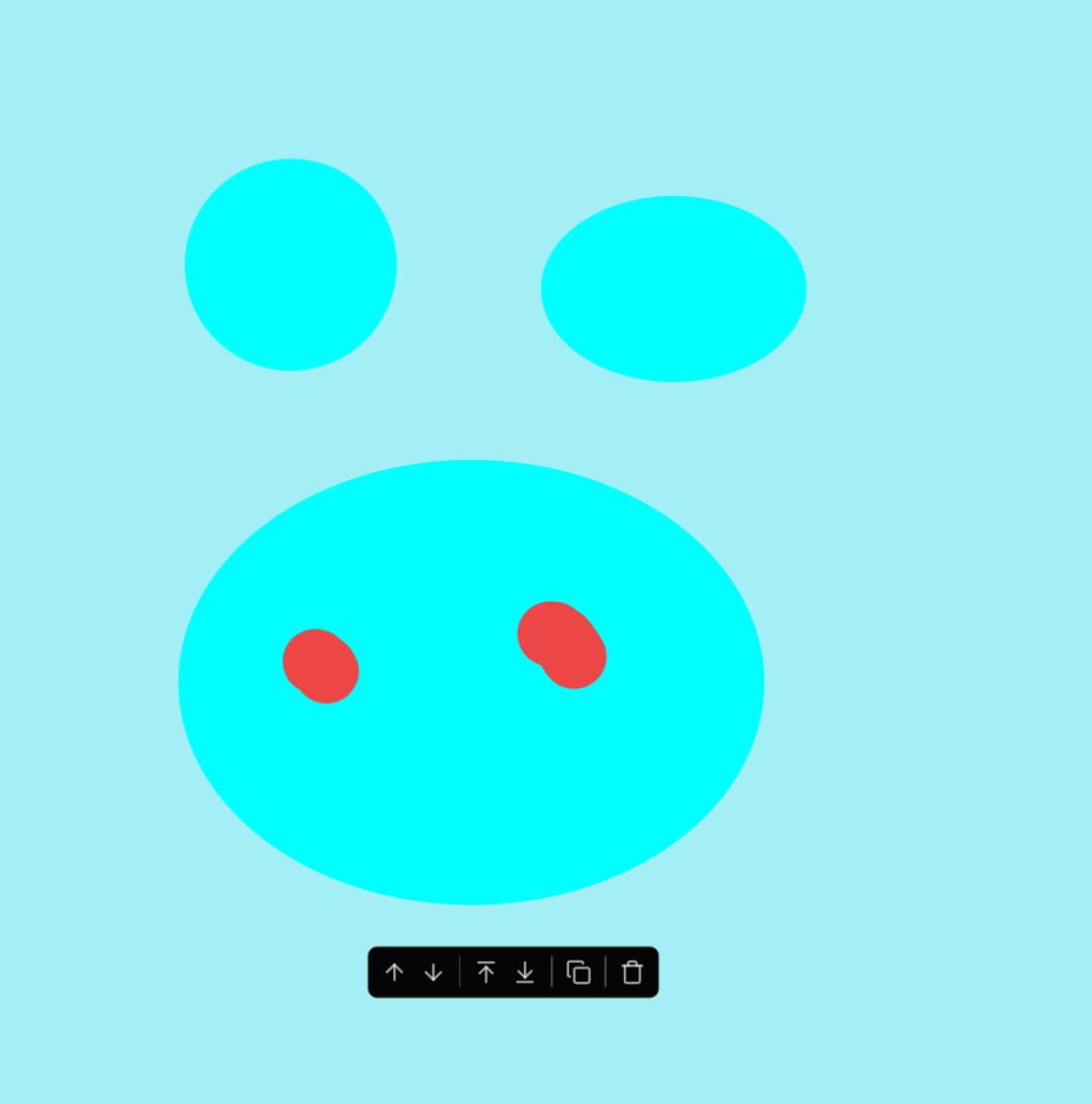 与「文生图」不同,「图生图」对作品效果控制力更好。因为除了文本,你还可以借助一些简单的线条、色块工具,涂鸦几笔,勾勒作品的大致轮廓,供机器加强「理解」。我们先用工具画了个非常简单的猪头: