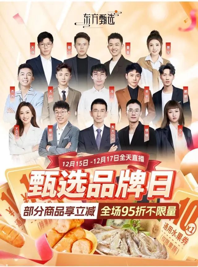 值得注意的是,昨日上午,在东方甄选发布的12月15到12月17日甄选品牌的直播预告中,排班主播席位中未看到董宇辉的身影,而东方小孙、顿顿、YOYO等主播在列。