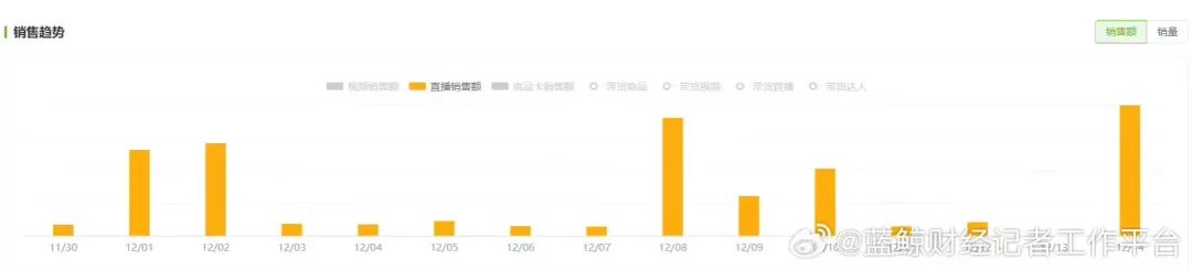 蓝鲸记者从东方甄选方面了解到,12月14日,东方甄选销售自营产品的抖音店铺,日销售额超过6200万元,创下过去两年东方甄选自营品最高销售纪录。全渠道自营品销量突破7000万元。抖音渠道近15天直播销售额也显示,东方甄选在12月14日的直播销售额,超过12月8日至10日吉林专场期间的最高峰值。